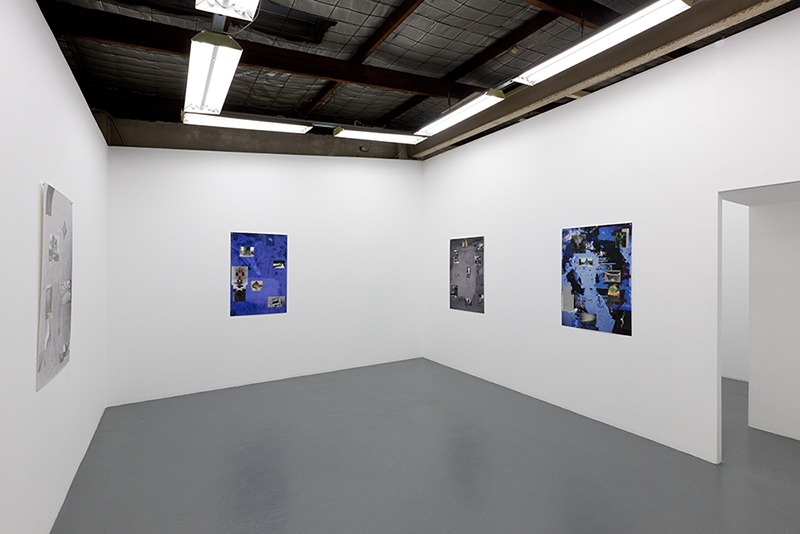 A series of collages, with large-format backgrounds of photographic details of found surfaces including painted walls, peeling posters and graffiti. Onto these grounds are pasted constellations of varied imagery including found and historic photography, with subjects ranging from microscopic details to cosmic phenomena.